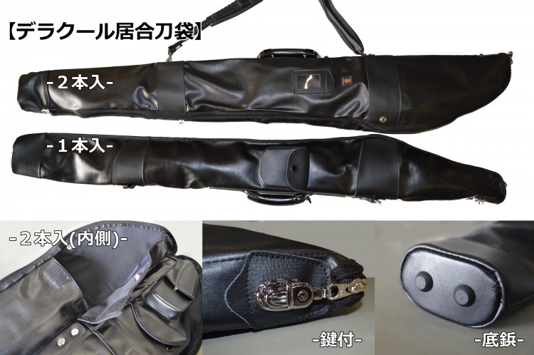 ●デラクール居合刀袋(1本入or2本入)マチがあり底鋲付で立てやすく、底摺しにくいタイプです。鍵付なので何かにひっかかってファスナーが開いていた!という事はありません!高価な居合刀を新調された際にもおすすめ★